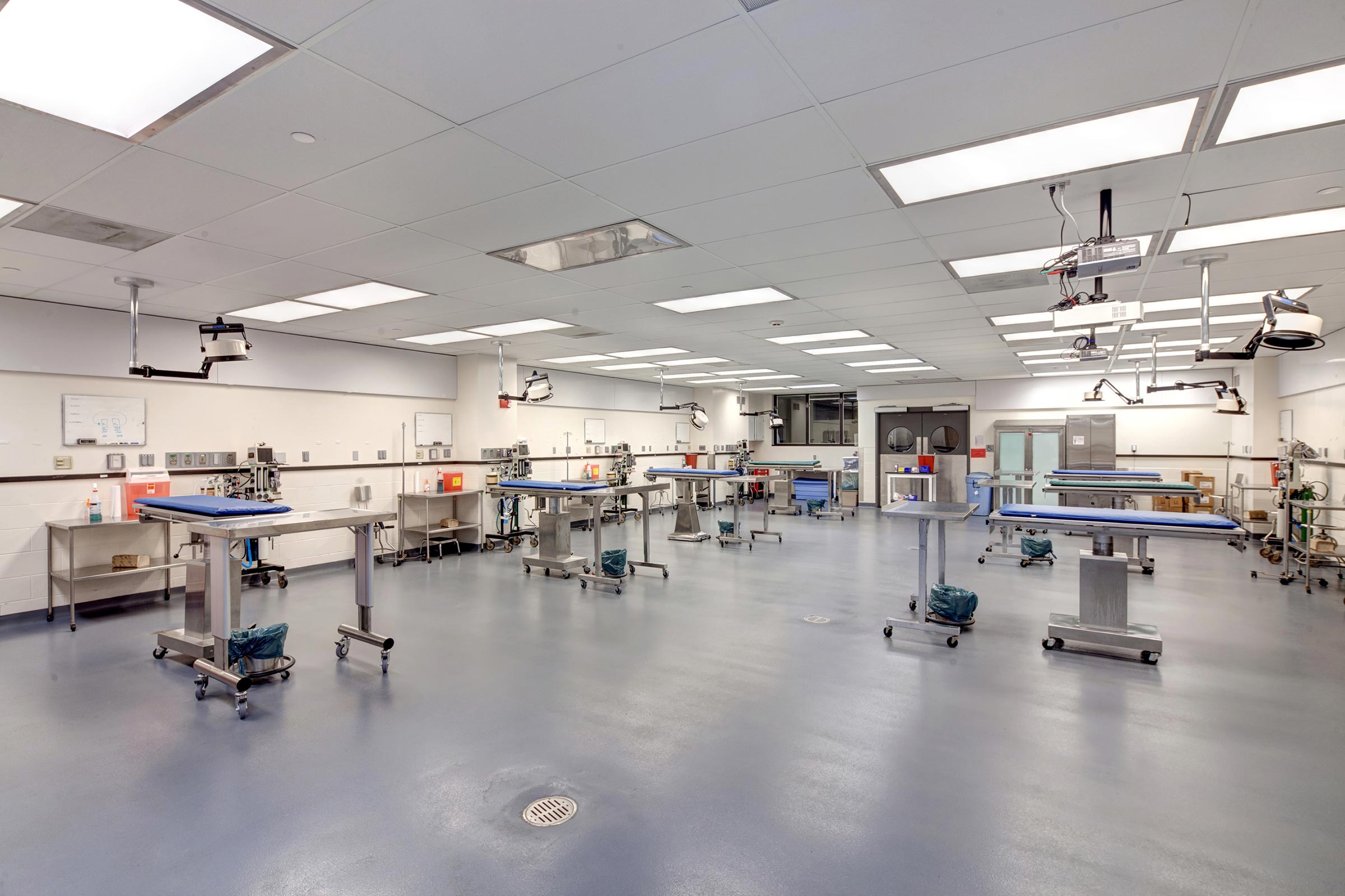 The College of Veterinary Medicine at Cornell University needed to add more stations to its Surgical Medicine Skills Lab. To achieve this, SWBR enlarged the room into adjacent space adding stations to both the Surgery Suite and the Induction Room. Each new station was equipped with necessary plumbing, medical gasses and electrical outlets, as well as surgical lights. The new areas were finished to match the existing, with seamless transitions in materials.